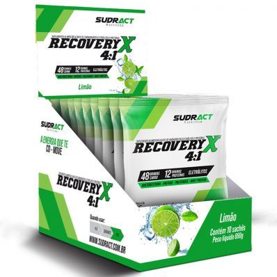 DESCRIÇÃO DO PRODUTO: As atividades físicas de intensidade alta consistem na geração de microlesões nos músculos. Estas microlesões fazem com que o organismo se adapte e melhore sua condição para uma próxima sessão. No entanto, essas atividades também geram bastante desconforto e dores musculares tardias. Ou seja, a pessoa fica com as pernas ou os braços “pesados”, com dificuldade para executar tarefas do cotidiano. Para diminuir a fadiga e auxiliar na recuperação muscular, a Sudract desenvolveu o Recovery X 4:1. Ele é um suplemento energético para atletas, formulado com a melhor combinação de Carboidratos e Proteínas na relação 4:1. O efeito pós-exercício é perceptível, com aumento da reposição de glicogênio e melhora na recuperação muscular, deixando o corpo pronto e recuperado para o próximo treinamento. O Recovery X 4:1 Sudract é destinado aos praticantes de exercícios de maior duração, que exigem maior consumo de macronutrientes, como carboidratos e proteínas, e micronutrientes, como vitaminas e minerais, além de eletrólitos que equilibram a hidratação. Nele você encontra uma boa dose de carboidratos complexos e simples, como palatinose, maltodextrina e frutose. Além disso, há a ingestão de proteína com WheyProtein Concentrado, que auxilia na recuperação muscular. Com este produto você se recupera mais rápido e está sempre pronto para o próximo treino!