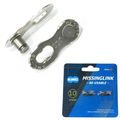 EMENDA DE CORRENTE, 10V, CL559R-NP, CROMADA, COMPATIVEL SHIMANO, PODE SER REUTILIZADA DE 3 A 5 VEZES (JOGO) - KMC |